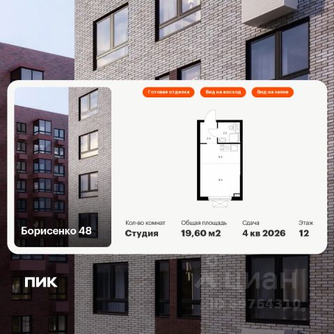 Продаётся квартира-студия площадью 25,8 кв.м на 7 этаже 28 этажного дома (Корпус 2, Секция 2) проекта ПИК Борисенко 48. Светлый просторный подъезд на уровне земли, функциональная планировка, большие окна, предчистовая отделка. "Борисенко 48" - небольшой квартал в Первомайском районе, в 15 минутах пути на автомобиле от центра Владивостока. С верхних этажей откроется живописный вид на город и сопки. В проекте всего четыре дома и подземный паркинг, в который можно будет спуститься на лифте. Высота домов от 17 до 30 этажей - благодаря переменной этажности солнце будет лучше освещать двор и квартиры. На первых этажах откроются пекарни, кафе, магазины и другие сервисы - это удобно, когда внезапно закончится хлеб или захочется побаловать себя горячим кофе. Из каждого дома будет выход в уютный двор-парк - это закрытая территория для отдыха, где растут цветы и деревья, оборудованы детские и спортивные площадки. Рядом с "Борисенко 48" появится также детский сад для 150 малышей. В пешей доступности есть всё необходимое для комфортной жизни: школы, детские сады, поликлиника и магазины. До крупных торговых центров "Калина Молл" и "Луговая", а также супермаркета "Реми" - всего 5 минут на машине. А до озера на Сафонова, которое отлично подходит для прогулок и отдыха, можно дойти пешком за 9 минут. Живописная Леопардовая набережная - в 10 минутах на автомобиле. Из квартала можно будет выехать как на улицу Борисенко, так и на улицу Сафонова. Артикул 918395 (Застройщик ООО "СЗ "Юстина")