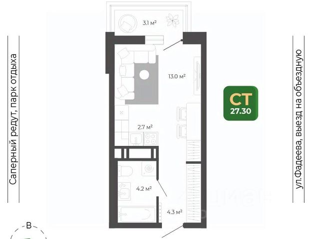 Квартиры в жилом комплексе Зелёный бульвар 2.0 во Владивостоке — вторая очередь строительства флагманского жилого комплекса "Зелёный бульвар". Жилой комплекс "Зелёный бульвар 2.0" — пространство, где природа и комфорт соединяются воедино: Перспективный развивающийся микрорайон — открыт выезд на дорогу Де-Фриз, до центра 15 минут, рядом детский сад, в шаговой доступности планируется строительство новой школы на 1200 мест с собственным бассейном. • Закрытая территория для вашей безопасности • Фонтаны, детские площадки, детский автодром, теннисный корт и гольф-поле создают атмосферу активного и размеренного отдыха • Разнообразное и насыщенное озеленение, более 12 000 растений на территории благоустройства • Пешеходный бульвар протяженностью 1 км с уютными кафе, магазинами, зелёными зонами для отдыха • Светлое лобби с панорамными окнами, мягкими диванами и арт-объектами создаёт уют с порога. Безбарьерная среда обеспечивает комфортный вход для всех, а коляски, велосипеды и самокаты удобно хранить в специальных помещениях на первом этаже • Панорамные балконы с живописными видами • Подземный двухуровневый паркинг с прямым доступом на лифте и два отдельно стоящих многоуровневых паркинга — всего более 1900 мест • Собственная УК "Зелёный бульвар" — лучшая по мнению Urban Awards и Green Property в 2023г Комфортные планировки от студий 19,45 кв.м до 3-комнатных семейных квартир площадью 91,29 кв.м: • Черновая отделка и отделка WhiteBox • Высота потолков от 2,7-3м Более 20 планировочных решений: • студии от 19,45-27,47 кв.м • однокомнатные и евродвухкомнатные квартиры от 35,14-50,54 кв.м • двухкомнатные квартиры от 53,55-71,80 кв.м • трехкомнатные квартиры от 91,06-91,29 кв.м Зелёный бульвар 2.0 — это 7 домов комфорт-класса переменной этажности на территории 6,5 гектаров. Представьте себе двор площадью 1,6 гектара — это как два футбольных поля, где есть всё для жизни и отдыха. Новый формат жилья в комфортной среде. Благоустроенная территория с эксклюзивными детскими площадками. Проект разительно отличается от всего, что предлагается сегодня на рынке новостроек Владивостока — это не традиционные бетонные джунгли, а новый формат жилья в комфортной среде. Трендсеттеры комфортного благоустройства во Владивостоке. Первая очередь жилого комплекса "Зелёный бульвар" — победитель Urban Awards за лучшее благоустройство и инфраструктуру. Способы покупки: -Дальневосточная ипотека -Семейная ипотека -Субсидирование дальневосточной и базовой рыночной ипотеки -Рассрочка на первоначальный взнос -Программы рассрочки от застройщика -Trade-In (программа обмена своей квартиры на новую) О застройщике: СМЕЛО — девелопер нового поколения, перезагрузивший рынок недвижимости Приморья. С момента выхода на рынок мы внедрили смелый подход к проектированию дворов, архитектуре и управлению жильём. В центре внимания — не только строительство, но и создание среды: благоустройство, спорт, озеленение, комфорт жителей. Продам квартиру-студию в новостройке в районе Ленинский в городе Владивосток.