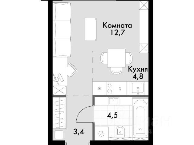 Продаётся квартира-студия площадью 18,8 кв.м на 13 этаже 25 этажного дома (Корпус 4, Секция 2) проекта ПИК Снежный парк. Светлый просторный подъезд на уровне земли, функциональная планировка, большие окна, c отделкой. Жилой квартал "Снежный парк" возводится в развитом микрорайоне Владивостока - Снеговой Пади. Рядом уже есть всё для комфортной жизни: 2 школы, детская и взрослая поликлиники, торговый центр и магазины. Проект будет состоять из 7 корпусов, высота которых от 24 до 29 этажей. Благодаря низкой плотности застройки жители будут чувствовать себя комфортно. За счёт переменной этажности в квартиры будет попадать ещё больше естественного света. Из окон последних этажей будет открываться панорамный вид на Амурский залив и лес. В квартирах предусмотрены большие окна, застеклённые балконы и лоджии - будет светло и уютно даже зимой. В жилом квартале появится уникальное общественное пространство с пешеходным бульваром и зонами для отдыха. На первых этажах откроются кафе, магазины и полезные сервисы, куда можно спуститься за горячим кофе или свежеиспечённым хлебом. Из каждого дома будет выход в уютный двор-парк с современными детскими и спортивными площадками. Здесь мы посадим цветы и деревья: будет приятно отдыхать или почитать книгу. Артикул 1050588 (Застройщик ООО "СЗ ФОРМУЛА-ДВ") Продается квартира-студия в новостройке в районе Первореченский в городе Владивосток.