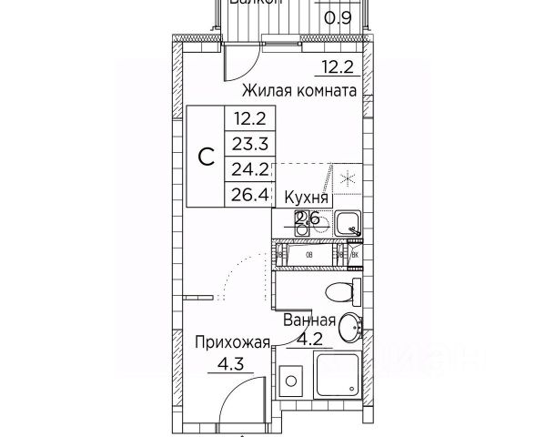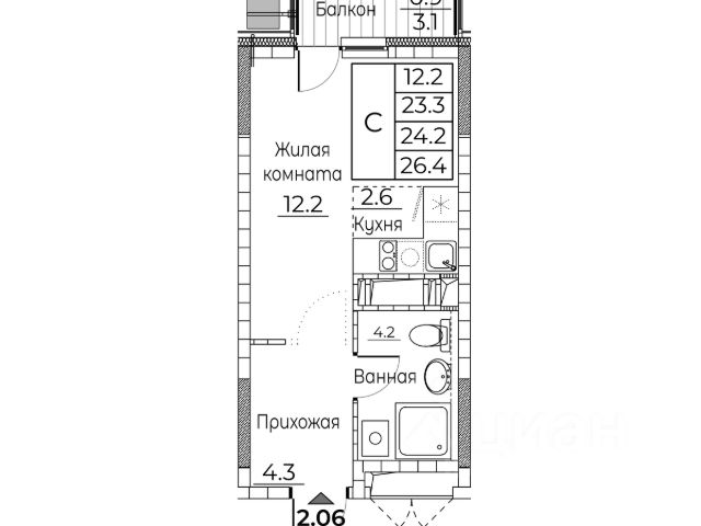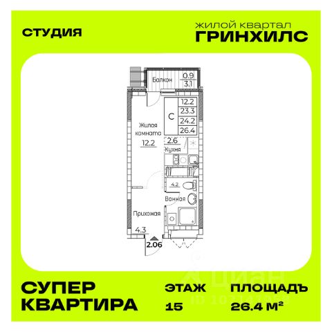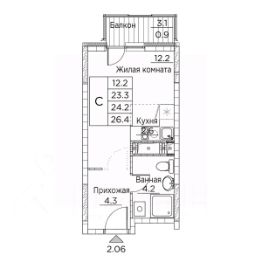 Комфортные планировки от студий 19,45 кв.м до 3-комнатных семейных квартир площадью 91,29 кв.м: