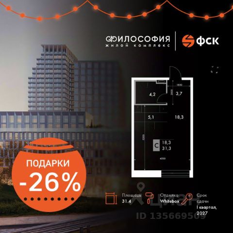 Продается студия с предчистовой отделкой в ЖК "Гринхилс". Общая площадь квартиры — 27.2 кв. м, этаж 9 из 20. Тип дома — монолитный. Цена указана при 100% оплате. ЖК "Гринхилс" — жилой квартал комфорт-класса в выгодной локации микрорайона Зеленый угол: развивающегося современного жилого кластера во Владивостоке, внутри которого реализуются проекты нового поколения, преобразуя город. Полный набор необходимой инфраструктуры, транспортная доступность, исторические места города в шаговой доступности, а также окружение леса — все это и есть современный Зеленый угол. ТРАНСПОРНАЯ ДОСТУПНОСТЬ - 15 минут до центра; - 17 минут до ж/д вокзала; - 10 мин до пляжа Патрокл*; - 30 минут до автовокзала; - 50 минут до аэропорта. *В конце 2025 года планируется ввод дороги, соединяющей район с объездной Седанка-ДеФриз-Патрокл. ПЛАНОВЫЙ ВВОД В ЭКСПЛУАТАЦИЮ - 1 корпуса — 2 квартал 2026 года; - 2 и 3 корпусов — 2 квартал 2027 года. АРХИТЕКРУРНЫЕ И ИНЖЕНЕРНЫЕ РЕШЕНИЯ, ПОВЫШАЮЩИЕ КАЧЕСТВО ЖИЗНИ - Приватный безопасный каскадный двор-парк площадью более 4000м2, спроектирован как отдельный архитектурный объект с зонами, включающими в себя целый комплекс оборудования для детей и взрослых, озеленением и современным освещением, благодаря которому будет приятно гулять и отдыхать во дворе в вечернее и ночное время; - Доступ на территорию всего ЖК только для вас и ваших гостей; - Видеонаблюдение по периметру всего ЖК, безбарьерный доступ в дом с обеих сторон и современная домофония; - Дизайнерская отделка мест общего пользования, чтобы было приятно каждый раз, когда приходишь к себе домой; - Предусмотрено место для консьержа, а также туалеты на первых этажах для вашего комфорта; - Колясочные и три современных лифта c прямым доступом к индивидуальным кладовым и паркингу; - Трехэтажный приватный паркинг в 3-м корпусе: широкие проезды, индивидуальные машиноместа, безопасное и комфортное хранение вашего автопарка. МНОЖЕСТВО ПЛАНИРОВОЧНЫХ РЕШЕНИЙ И ВАРИАНТОВ ОТДЕЛКИ - Студии, 1к, 2к, 3к, 4к и квартиры евро-формата спроектированных по стандарту "Эргом2етрика", учитывающие различные сценарии жизни. Для вашего удобства для каждого варианта планировки вы можете выбрать подходящую готовности квартиры: - Без отделки; - Без отделки с выполненной стяжкой пола; - Whitebox — квартира, готовая к декорированию: стены подготовлены дя отделки, проведена электрика с учетом рекомендаций по расстановке мебели и бытовой техники, выровнен пол, в каждой квартире установлена взломостойкая входная дверь; - Whitebox plus — квартира, готовая к декорированию, в которой выполнена полностью отделка санузла; - Квартира с полностью готовой современной отделкой в светлых тонах. Во всех квартирах лоджии имеют панорамное остекление. Для вашего удобства в 1м корпусе открыт демонстрационный этаж, где вы сможете вживую увидеть все варианты отделок квартир. Записывайтесь на показ по контактам в этом объявлении. Продается квартира-студия с отделкой в районе Ленинский в городе Владивосток.