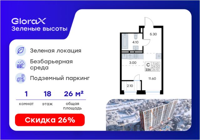 Продается квартира-студия на 11-м этаже в жилом квартале GloraX Зелёные высоты — проекте в тихой зелёной локации. Общая площадь квартиры 27,00 кв. м, из которых 13,40 кв. м включая 13,40 кв. м жилого пространства и 3,50 кв. м кухни. Номер квартиры - 354. Преимущества квартиры: зонируемая студия; лоджия. Преимущества проекта: • Идеальное сочетание городской и загородной жизни • Сдаем в 2026 году • Уютный зелёный район с развитой инфраструктурой • Великолепные виды на Вечнозеленый сквер и лесопарк на 150 Га • Видеонаблюдение, IP-домофон, Wi-Fi на территории, • Дизайнерские входные группы • Безбарьерная среда, колясочные, туалеты на 1 этаже, лапомойки • Эксклюзивное благоустройство территории • Подземный паркинг на 235 машино-мест с лифтом на жилые этажи • Индивидуальные кладовые от 3 до 7 кв. м • Черновая отделка для реализации любых дизайнерских идей GloraX Зелёные высоты — современный жилой проект, сочетающий преимущества городской и пригородной жизни. Комплекс тщательно продуман для максимального удобства и обеспечения безопасности жителей. Квартал расположен в зеленом, живописном и активно развивающемся районе Зеленый Угол, вдали от серой массовой застройки. Жители GloraX Зелёные высоты смогут насладждаться прогулками в Вечнозелёном сквере или лесопарке. В непосредственной близости находятся остановки общественного транспорта и автомобильный подъезд со стороны Нейбута. Скоро также появится выездом на трассу Де-Фриз-Седанка, что обеспечит быстрый доступ в любую часть города и пригород. Проект включает 2 корпуса, каждый из которых спроектирован с акцентом на комфорт, безопасность и современный образ жизни. В комплексе предусмотрен подземный паркинг на 235 машиномест с доступом прямо с жилых этажей. Паркинг оборудован современными системами видеонаблюдения, контроля въезда-выезда и пожаротушения. Цокольный этаж здания отведен под индивидуальные кладовые площадью от 3 до 7 квадратных метров, которые можно использовать для хранения сезонных вещей. Доступ к кладовым - на лифте с жилых этажей. Территория жилого квартала благоустроена и включает игровые зоны и спортивные площадки для детей различных возрастных групп, уютные зоны отдыха со скамейками и универсальную воркаут-площадку для активного досуга. В шаговой доступности располагаются все необходимые объекты социальной инфраструктуры. Узнайте больше в отделе продаж — выберите свою квартиру в GloraX Зелёные высоты уже сегодня! Продается квартира-студия на улице Нейбута в городе Владивосток.