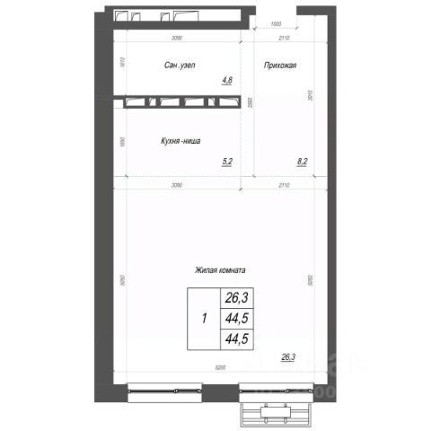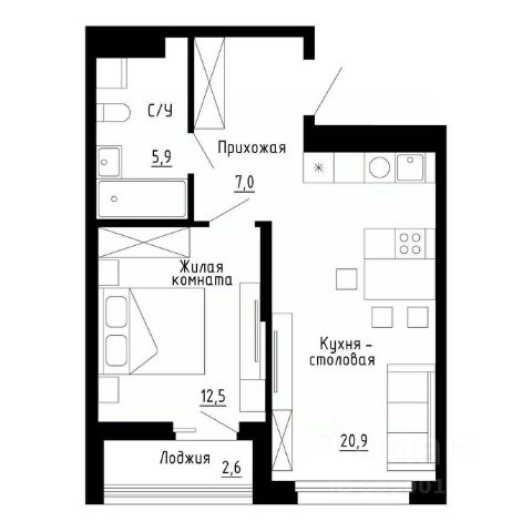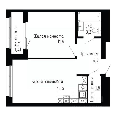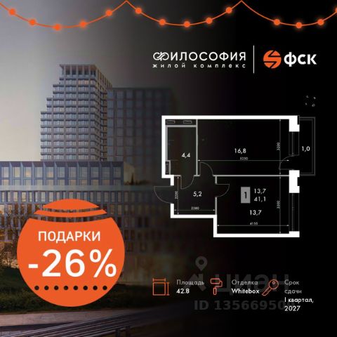 Общая площадь квартиры — 25.7 кв. м, этаж 16 из 18.