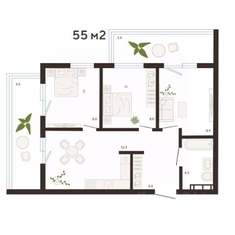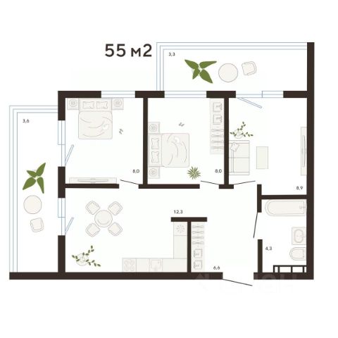 Продаётся 3-комнатная квартира в строящемся доме (Дом 1), срок сдачи: III-кв. 2029, общей площадью 55 кв.м., на 2 этаже. Новый жилой комплекс от Специализированного застройщика "Пегас" расположен по адресу: г. Владивосток, по ул. Луговая.