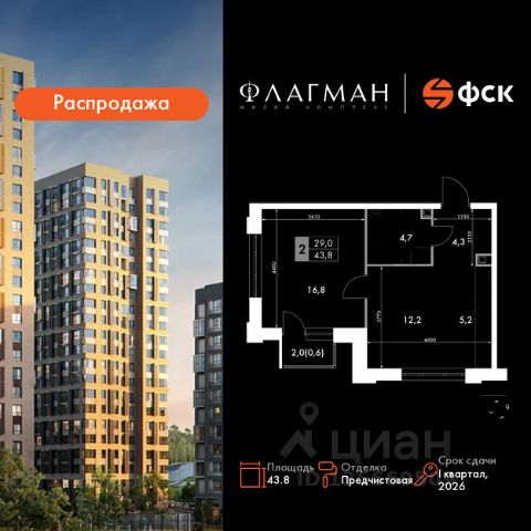 Прямая продажа от застройщика! Жилой Комплекс комфорт-класса. Продаётся 2-к квартира номер 136 общей площадью 40 кв.м. на 13-м этаже 30 этажного здания. Отделка Whitebox. Цена с учётом скидки. Особенности квартиры: - Линейная планировка - максимальная функциональность и удобство. - Евроформат - просторное и удобное жилье с отличной планировкой. Квартира с предчистовой отделкой (White box). Вам не придется заниматься черновыми и трудоёмкими работы, а чистовую отделку и дизайн - сделайте на свой вкус. Информация о комплексе: "Флагман" - современный жилой комплекс для тех, кто ценит комфорт, эстетику и личное пространство. Корпуса, выполненные в едином архитектурном коде, создают выразительный силуэт и формируют гармоничное городское пространство. Современная архитектура от одного из ведущих бюро страны сочетает лаконичность форм и внимание к деталям. Приватные дворы, озеленённые улицы и продуманная инфраструктура делают жизнь здесь по-настоящему комфортной.Благодаря удобному расположению и транспортной доступности, вы легко доберётесь в любую часть города. Транспортная доступность: - 9 мин. пешком до детского сада - 7 мин. до школы - 5 мин. до взрослой поликлиники - 1 мин. до автобусной остановки Внутренняя инфраструктура: Каждая деталь продумана для вашего удобства. Для прогулок и отдыха предусмотрен ландшафтный парк и пешеходный бульвар. Закрытые дворы оснащены детскими и спортивными площадками, а в каждом доме предусмотрены кладовые и колясочные. Комфортные гостевые зоны и зоны ожидания создают атмосферу уюта уже с первых шагов в дом. Все корпуса имеют удобный вход без ступеней и пандусов, обеспечивая лёгкий доступ для жителей любого возраста. Для автомобилистов предусмотрен одноэтажный паркинг с автоматической мойкой, а на первых этажах расположены коммерческие помещения, обеспечивающие повседневные потребности жителей.