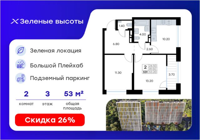 Продается 2-комн. квартира на 10-м этаже в жилом квартале Зелёные высоты от GloraX — проекте в тихой зелёной локации. Общая площадь квартиры 57,80 кв. м, из которых 23,70 кв. м включая 23,70 кв. м жилого пространства и 15,10 кв. м кухни. Номер квартиры - 99. Преимущества квартиры: компактная евро-3; вид на лесопарк; лоджия. Преимущества проекта: • Идеальное сочетание городской и загородной жизни • Сдаем в 2026 году • Уютный зелёный район с развитой инфраструктурой • Великолепные виды на Вечнозеленый сквер и лесопарк на 150 Га • Видеонаблюдение, IP-домофон, Wi-Fi на территории, • Дизайнерские входные группы • Безбарьерная среда, колясочные, туалеты на 1 этаже, лапомойки • Эксклюзивное благоустройство территории • Подземный паркинг на 235 машино-мест с лифтом на жилые этажи • Индивидуальные кладовые от 3 до 7 кв. м • Черновая отделка для реализации любых дизайнерских идей Зелёные высоты — современный жилой проект, сочетающий преимущества городской и пригородной жизни. Комплекс тщательно продуман для максимального удобства и обеспечения безопасности жителей. Квартал расположен в зеленом, живописном и активно развивающемся районе Зеленый Угол, вдали от серой массовой застройки. Жители проекта Зелёные высоты смогут наслаждаться прогулками в Вечнозелёном сквере или лесопарке. В непосредственной близости находятся остановки общественного транспорта и автомобильный подъезд со стороны Нейбута. Скоро также появится выездом на трассу Де-Фриз-Седанка, что обеспечит быстрый доступ в любую часть города и пригород. Проект включает 2 корпуса, каждый из которых спроектирован с акцентом на комфорт, безопасность и современный образ жизни. В комплексе предусмотрен подземный паркинг на 235 машиномест с доступом прямо с жилых этажей. Паркинг оборудован современными системами видеонаблюдения, контроля въезда-выезда и пожаротушения. Цокольный этаж здания отведен под индивидуальные кладовые площадью от 3 до 7 квадратных метров, которые можно использовать для хранения сезонных вещей. Доступ к кладовым - на лифте с жилых этажей. Территория жилого квартала благоустроена и включает игровые зоны и спортивные площадки для детей различных возрастных групп, уютные зоны отдыха со скамейками и универсальную воркаут-площадку для активного досуга. В шаговой доступности располагаются все необходимые объекты социальной инфраструктуры. Узнайте больше в отделе продаж — выберите свою квартиру в проекте Зелёные высоты от GloraX уже сегодня!
