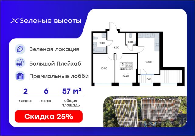 Продается 2-комн. квартира на 10-м этаже в жилом квартале Зелёные высоты от GloraX — проекте в тихой зелёной локации. Общая площадь квартиры 57,60 кв. м, из которых 20,70 кв. м включая 20,70 кв. м жилого пространства и 15,00 кв. м кухни. Номер квартиры - 339. Преимущества квартиры: компактная евро-3; лоджия. Преимущества проекта: • Идеальное сочетание городской и загородной жизни • Сдаем в 2026 году • Уютный зелёный район с развитой инфраструктурой • Великолепные виды на Вечнозеленый сквер и лесопарк на 150 Га • Видеонаблюдение, IP-домофон, Wi-Fi на территории, • Дизайнерские входные группы • Безбарьерная среда, колясочные, туалеты на 1 этаже, лапомойки • Эксклюзивное благоустройство территории • Подземный паркинг на 235 машино-мест с лифтом на жилые этажи • Индивидуальные кладовые от 3 до 7 кв. м • Черновая отделка для реализации любых дизайнерских идей Зелёные высоты — современный жилой проект, сочетающий преимущества городской и пригородной жизни. Комплекс тщательно продуман для максимального удобства и обеспечения безопасности жителей. Квартал расположен в зеленом, живописном и активно развивающемся районе Зеленый Угол, вдали от серой массовой застройки. Жители проекта Зелёные высоты смогут наслаждаться прогулками в Вечнозелёном сквере или лесопарке. В непосредственной близости находятся остановки общественного транспорта и автомобильный подъезд со стороны Нейбута. Скоро также появится выездом на трассу Де-Фриз-Седанка, что обеспечит быстрый доступ в любую часть города и пригород. Проект включает 2 корпуса, каждый из которых спроектирован с акцентом на комфорт, безопасность и современный образ жизни. В комплексе предусмотрен подземный паркинг на 235 машиномест с доступом прямо с жилых этажей. Паркинг оборудован современными системами видеонаблюдения, контроля въезда-выезда и пожаротушения. Цокольный этаж здания отведен под индивидуальные кладовые площадью от 3 до 7 квадратных метров, которые можно использовать для хранения сезонных вещей. Доступ к кладовым - на лифте с жилых этажей. Территория жилого квартала благоустроена и включает игровые зоны и спортивные площадки для детей различных возрастных групп, уютные зоны отдыха со скамейками и универсальную воркаут-площадку для активного досуга. В шаговой доступности располагаются все необходимые объекты социальной инфраструктуры. Узнайте больше в отделе продаж — выберите свою квартиру в проекте Зелёные высоты от GloraX уже сегодня!