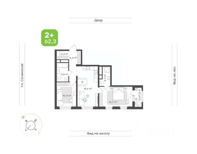 Комфорт, продуманный до мелочей Грамотное зонирование кухни-гостиной создаёт ощущение двух отдельных пространств — для кулинарных экспериментов и отдыха Уютная мастер-спальня с личным санузлом, выделенным местом под шкаф и лоджией обеспечивает комфортное личное пространство для отдыха Функциональная детская идеально подходит для организации спального и рабочего места, а благодаря месту под систему хранения поддержание порядка не составит труда Отдельный санузел с ванной и местом под стиральную машину делает жизнь семьи максимально удобной, а утренние сборы оптимизированными Просторная прихожая обеспечивает комфортную навигацию между всеми зонами квартиры