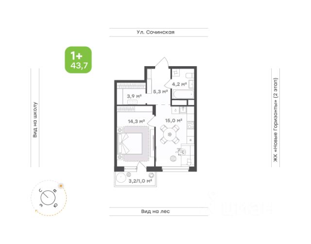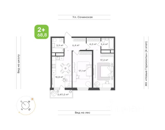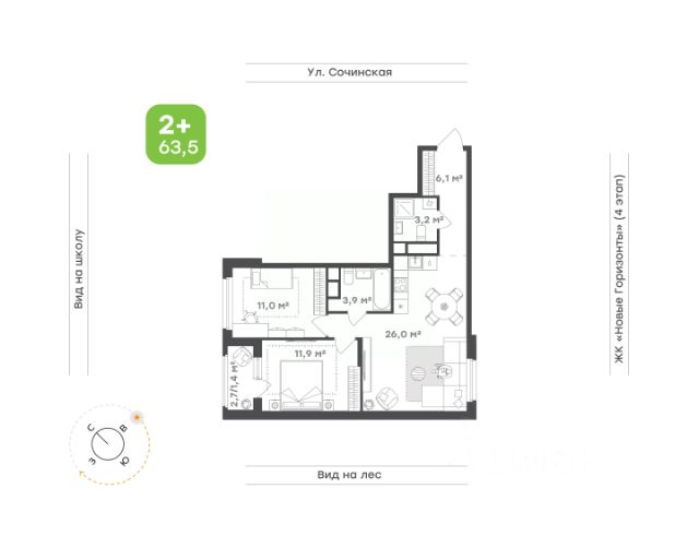 Идеальное пространство для семьи Кухня-гостиная с выходом на лоджию — место, где встречается вся семья. Уютное пространство для тёплых ужинов, душевных разговоров и весёлых встреч с друзьями Родительская спальня станет личным уголком спокойствия. Здесь можно уединиться и расслабиться после насыщенного дня Детская комната — светлая, уютная и функциональная. Достаточно места для игр, учёбы и отдыха, чтобы ребёнок чувствовал себя комфортно Просторный санузел с ванной — место для расслабления, а дополнительный санузел гарантирует удобство для всей семьи Прихожая с выделенным местом под систему хранения поможет поддерживать порядок и избавит от необходимости искать место для верхней одежды и обуви Окна на две стороны наполняют квартиру светом в любое время суток, формируя гармонию и вдохновение