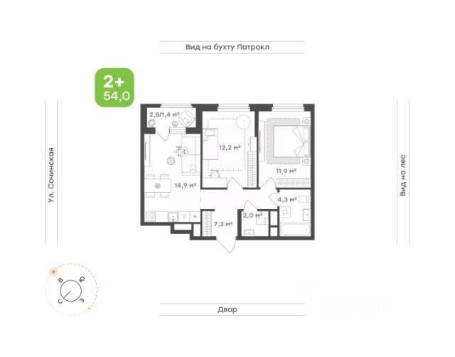 Мастер-спальня — личный уголок спокойствия с собственным санузлом и продуманным местом под систему хранения в отдельном коридоре, позволяющим организовать пространство максимально рационально
