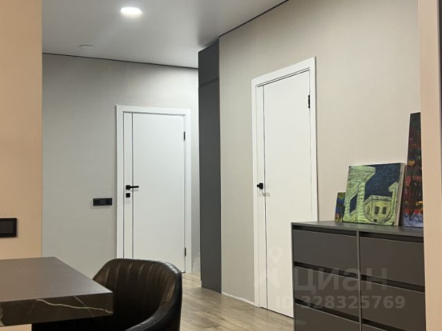 В квартире следующая планировка: прихожая; гостиная; кухонная зона; спальня; кабинет, который можно переоборудовать в детскую или вторую спальню; гардеробная; санузел; лоджия, балкон.