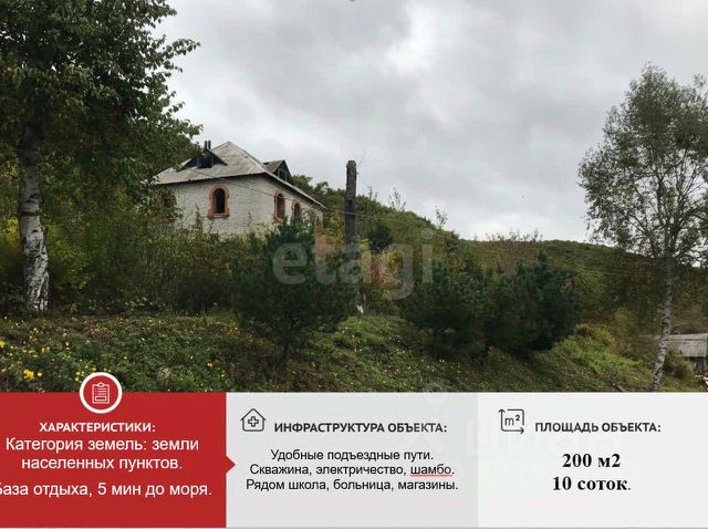 Дом 200 м² на возвышенности с панорамным видом на море! До моря 5 мин! Продается просторный кирпичный дом в красивом поселке Моряк Рыболов. Благодаря удачному расположению на возвышенности, из окон и с участка открывается беспрепятственный, великолепный вид на море. О доме: * Площадь 200 м², дом уже под крышей. * Надежные ж/б плиты перекрытия и капитальные кирпичные перегородки. * Готовы к установке пластиковые окна. * Есть техническая возможность достроить полноценный третий этаж. Идеально под базу отдыха: Площадь 200 м² и возможность достроить 3-й этаж позволяют разместить множество гостей. Потрясающий вид на море с возвышенности гарантирует 100% загрузку в курортный сезон. Для инвестора: Объект окупится за несколько летних сезонов благодаря локации, виду и отсутствию проблем с водой. Отличная альтернатива квартирному бизнесу. Участок и уникальные преимущества: * 10 соток земли с идеальным рельефом для обзора. * Два источника воды: скважина (10 метров) + дополнительный природный источник с кристально чистой питьевой водой выше по рельефу. * Возможность подключения электричества и канализация- шамбо. Вся необходимая инфраструктура рядом: мфц, больница, д/сад, школа, магазины. Вид с дом на море, направление юг, до моря 5 мин. земля в собственности. Земельный участок расположен на ровном побережье. Берег моря и дно моря песок с плавным углублением. Вода прозрачная, трава отсутствует. В шаговой доступности магазины. Подъезд к базе доступен для легковых машин. Площадь участка 10 сот. .В бухте расположена всего одна база. Участок при штормах и тайфунах не подтапливается. Тихое и спокойное место, дикая природа и морская рыбалка. Вредные производства отсутствуют в радиусе более 100 км. Идеальное место для жизни семьи у моря с запасом надежности и комфорта. Звоните, чтобы увидеть этот вид своими глазами! С нами сделка пройдёт максимально безопасно и комфортно! Эксперт по решению жилищных вопросов: Ким Ольга. Код пользователя: 197146 Номер в базе: 12062051