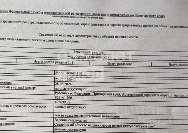 Земельный участок, по адресу: Приморский край, г. Артём, садоводческое товарищество Солидарность-1.
