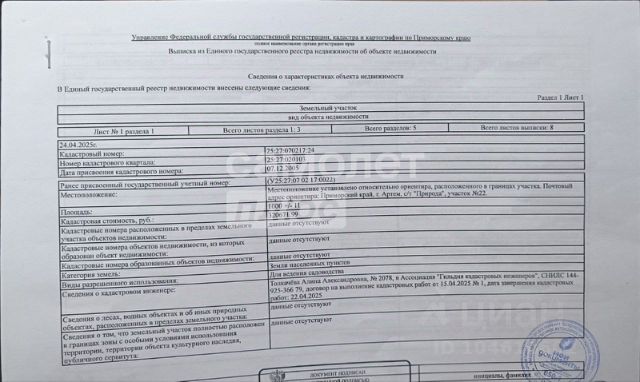 В центре событий!!! Крутейшая инвестиция!!! Продаются участки в самом перспективном месте Дальнего востока. Расположенные в 10 метрах от подножия строящегося круглогодичного курорта Арс гора С кадастровыми номерами: 25:26:030110:57 25:26:030110:127 25:26:030110:135 25:26:030110:172 Общей площадью около 50 соток Подъезд к участкам с асфальтированной Госстрассы Все коммуникации рядом, свет 380 вольт, 45 кВт, есть скважина. Через два года стоимость участков вырастет минимум в 2 раза! Цена на сегодняшний день за 4 участка 55 000 000 р.