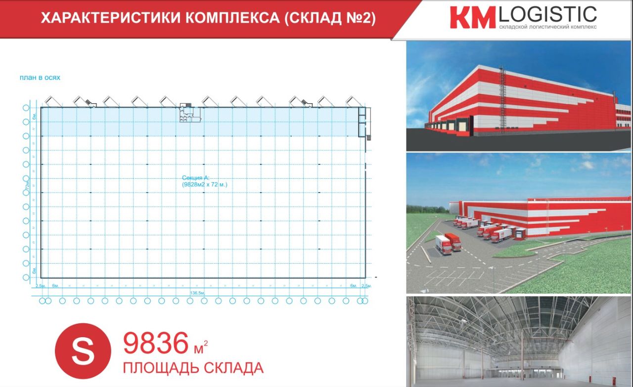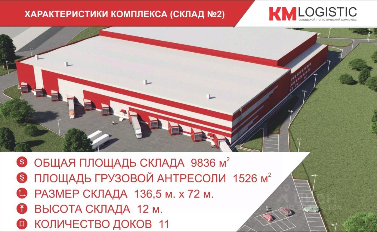 11 доков: 1 док на 900 м2 (высота рольставни 3м, под еврофуру)