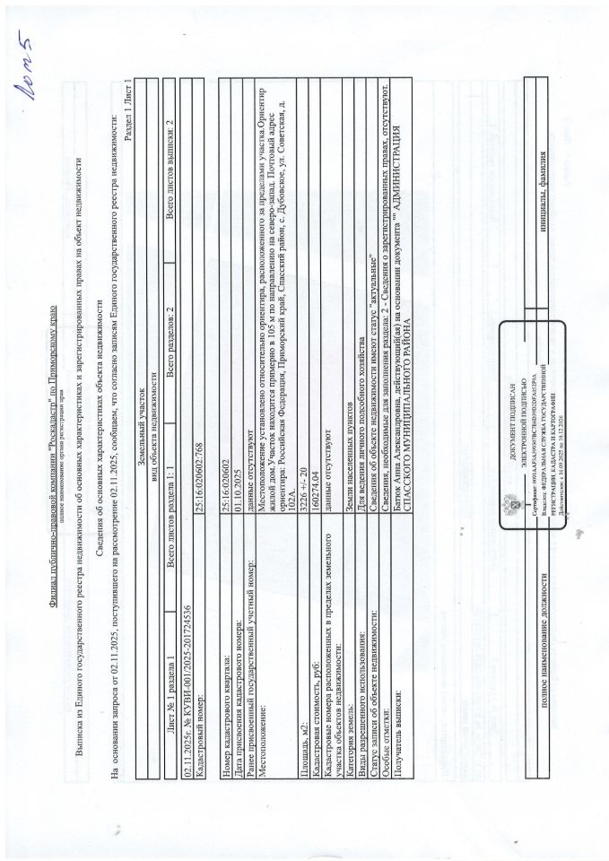 Земельный участок с видом разрешенного использования: для ведения личного подсобного хозяйства.