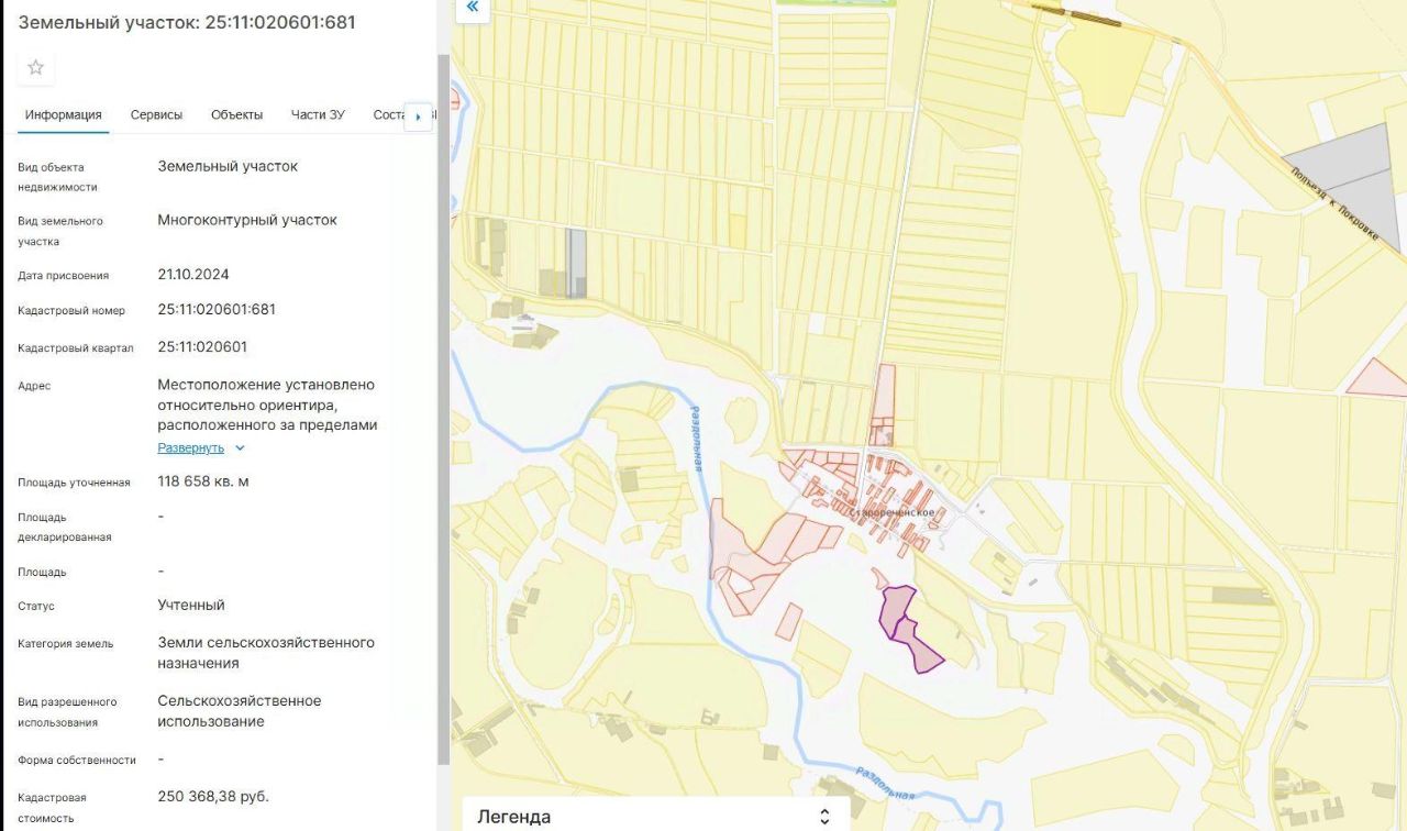 Земельный участок с кадастровым номером 25:11:020601:681
