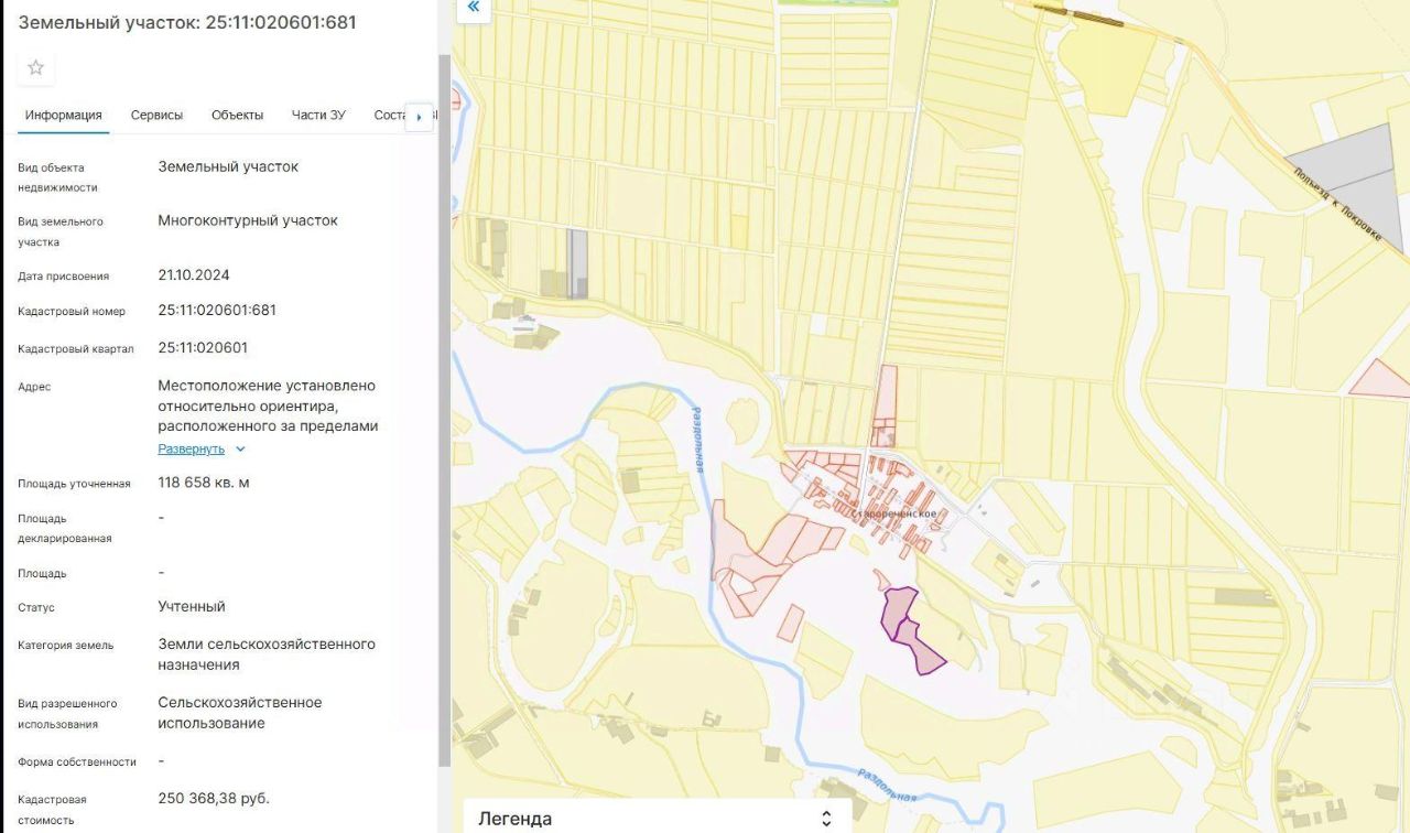 Земельный участок с кадастровым номером 25:11:020601:681