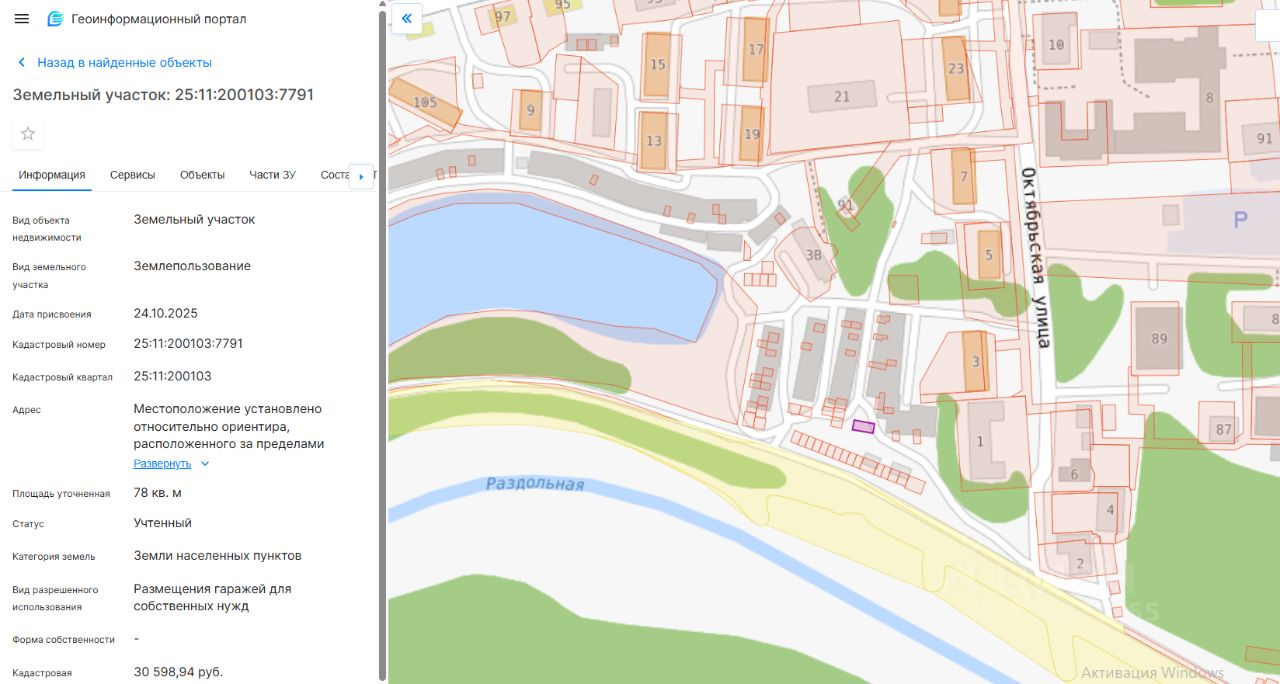 Земельный участок с кадастровым номером 25:11:200103:7791