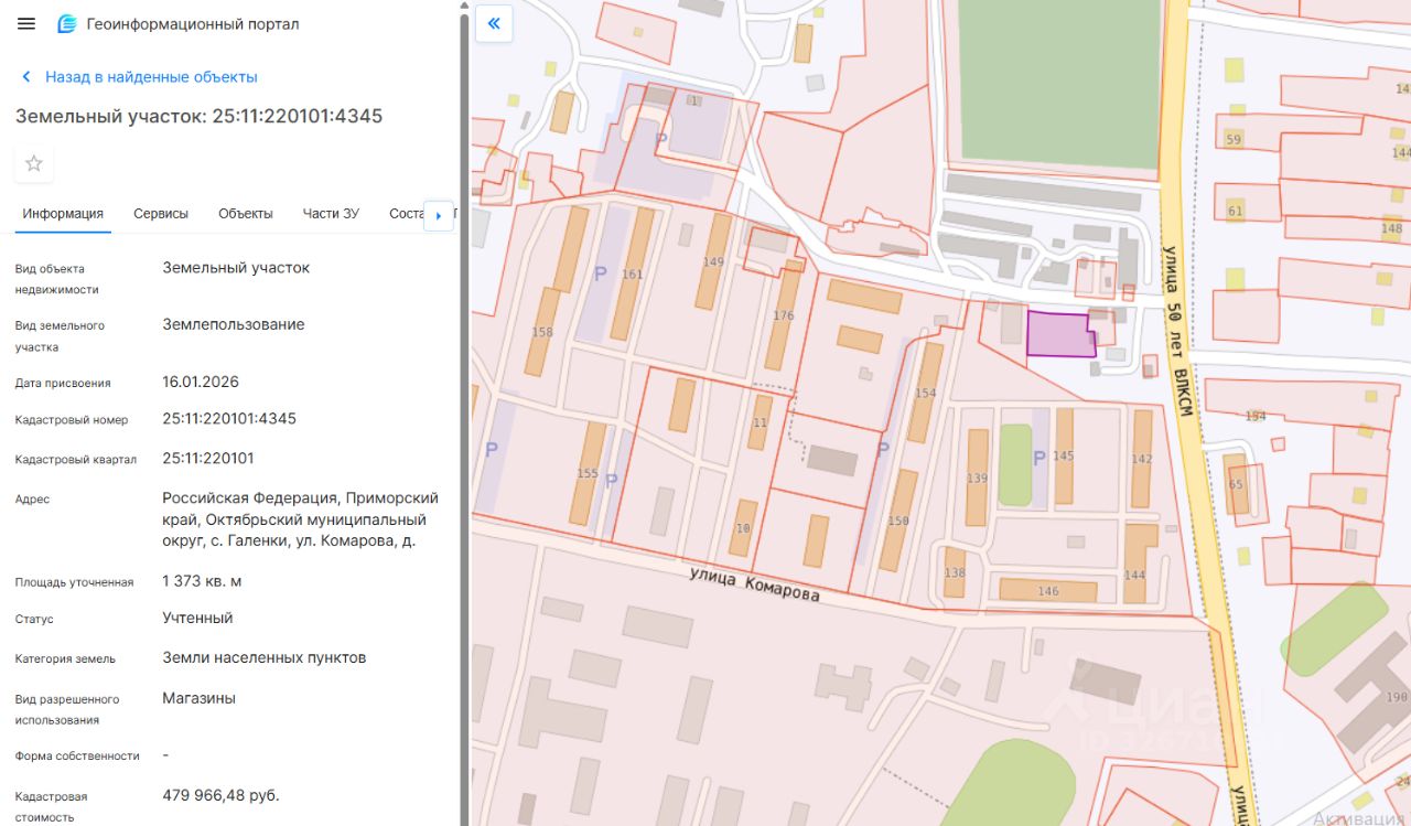 Земельный участок с кадастровым номером 25:11:220101:4345