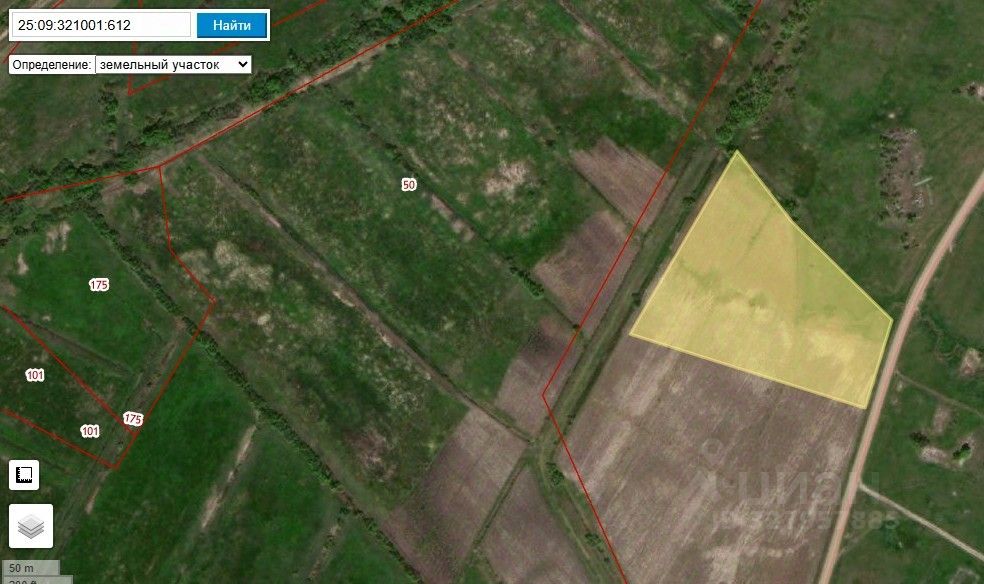 Земельный участок с кадастровым номером 25:09:321001:612 площадь 25000 по адресу Приморский край, Михайловский район, с. Песчаное