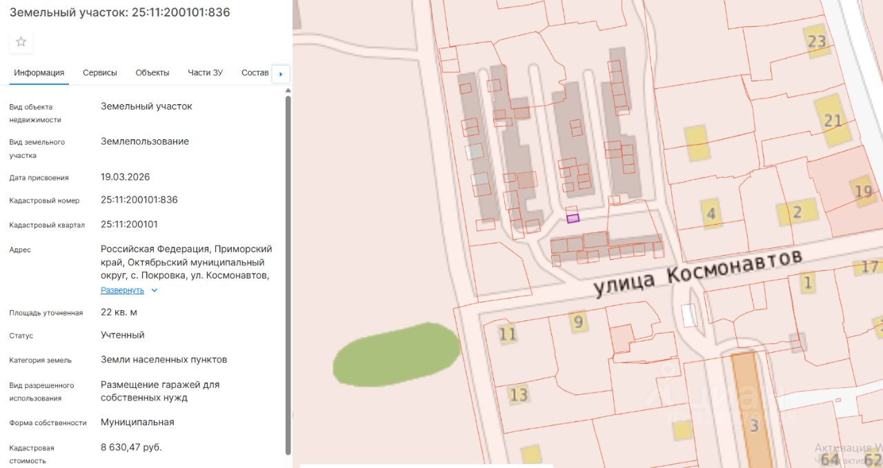 Земельный участок с кадастровым номером 25:11:200101:836
