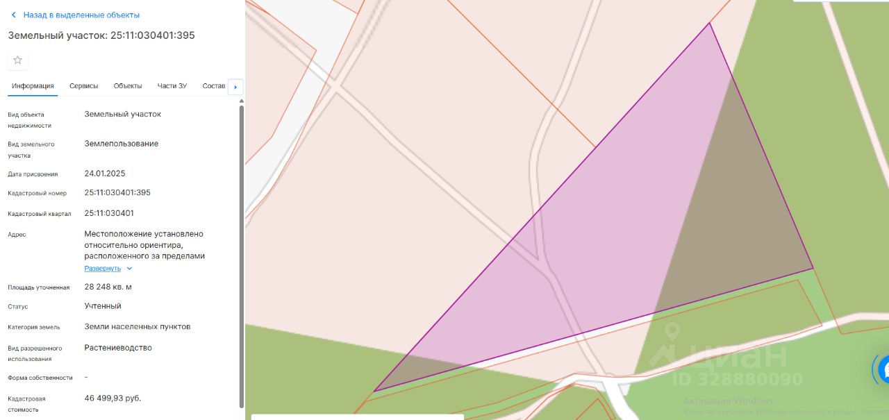 Земельный участок с кадастровым номером 25:11:030401:395 п