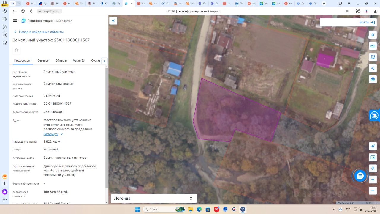 Земельный участок с кадастровым номером 25:01:180001:1567 площадь 1622 по адресу Приморский край, муниципальный округ Анучинский, село Таежка, улица Ключевая, д. 3