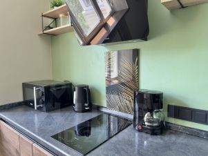 В квартире вся новая техника , большой шкаф купе ,посуда и все необходимые принадлежности. В ванной душевая кабина. ВСЕ окна оснащены жалюзи black out .