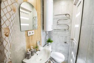 Ванная комната, водонагреватель, сушилка для белья, фен, утюг, гладильная доска;