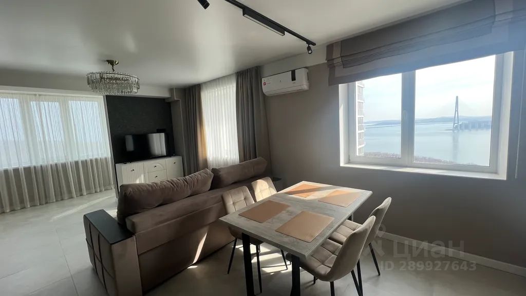 Светлая, уютная квартира с видом на море и мост "Русский". Рядом городской пляж. Удобно проехать на Русский остров, за город, в аэропорт без пробок по объездной дороге, а также в центр через "Золотой" мост.