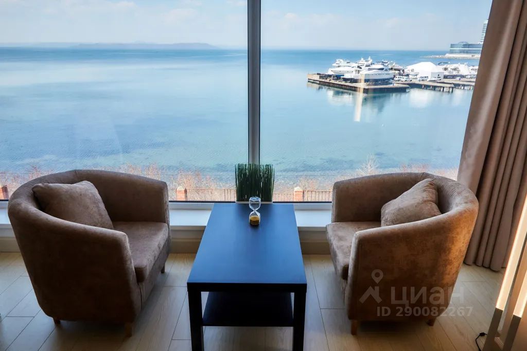 Из номера открывается панорамный вид на море и яхт клуб. Вы можете наслаждаться рассветом или закатом принимая душ или лёжа в ванной, благодаря панорамному остеклению витражей.