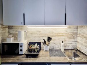 Несмотря на свои небольшие размеры, квартира очень эргономична и полностью укомплектована с заботой о гостях: