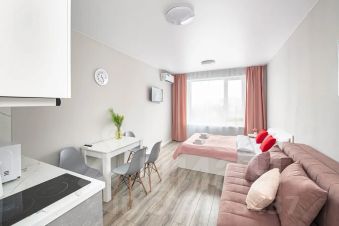 Уютная, современная квартира студия в новом жилом комплексе "atmosfera" с панорамным видом на бухту золотой рог и город