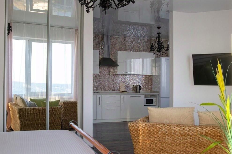 Апартаменты на высоком этаже, из окон открывается вид на город и море.