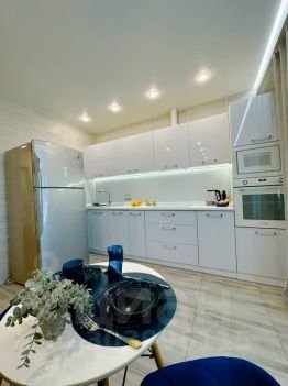 Двуспальная кровать, Диван, Журнальный столик, Кухонный гарнитур, Обеденный стол, Шкаф-купе, холодильник, посудомоечная машинка, стиральная машинка, бойлер, микроволновая печь, духовой шкаф, телевизор плазма.