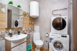 - кухня оборудована всем необходимым, холодильник, стеклокерамическая плита, духовой шкаф, микроволновая печь, тостер, чайник, посуда, посудомойка, кастрюли и сковородки, сахар, соль, чай, питьевая вода.