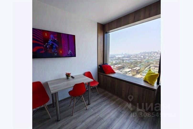 Уютная квартира-студия площадью 26 м² ,из панорамных окон открывается вид на бухту Золотой Рог,квартира находится на 15 этаже современного дома в ЖК "Атмосфера".На территории жилого комплекса бесплатная парковка, игровые площадки для детей разных возрастов, спортивная площадка,места отдыха для взрослых. Квартира идеально подходит для пары, одного гостя или семьи из 4 человек, желающих насладиться комфортом.