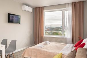 Добро пожаловать в современную студию с панорамным видом на бухту Золотой Рог! Квартира стильная, уютная и полностью готова к вашему приезду.