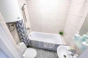 - Своя ванная комната с ванной, водонагревателем, стиральной машиной (с порошком!), феном, сушилкой.