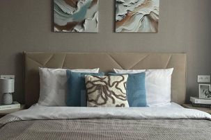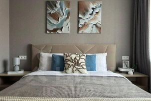4 Спальных места: двуспальная кровать с мягким изголовьем и гипоаллергенным матрасом и двуспальный диван из высококачественной и экологической ткани.