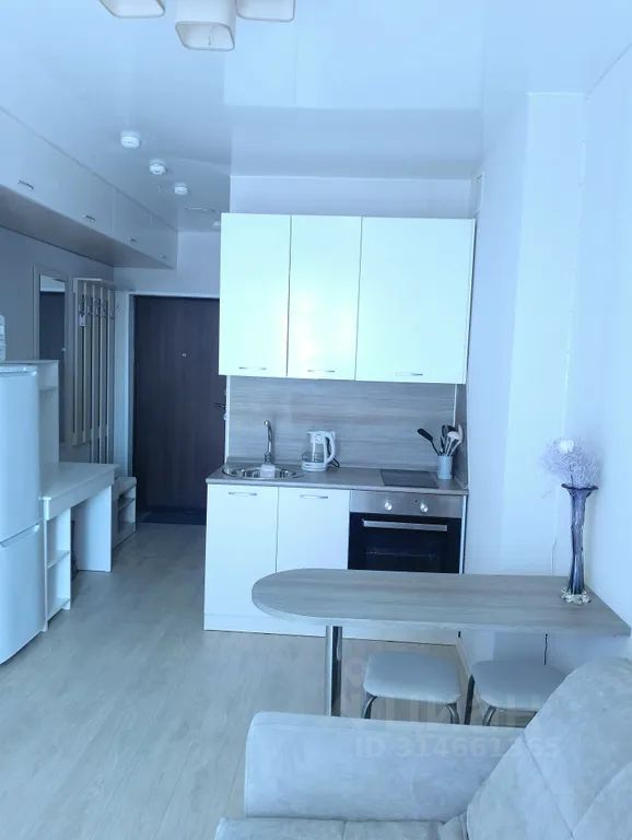 Кухня: варочная панель 2конфорки, духовой шкаф, холодильник, микроволновка. Из посуды: сковорода, две кастрюли, ножи, столовые приборы, тарелки, чашки, стаканы и др. Кухонные принадлежности.