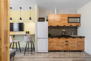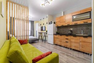 Полностью оборудованная кухня (посуда, плита, холодильник, чайник).
