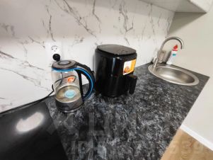 Есть вся необходимая техника и мебель: посуда, фен, утюг, чайник, гладильная доска, микроволновка, холодильник, стиральная машина, телевизор, сушилка для белья, кондиционер. Если чего-то не хватит — исправим :)