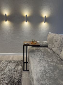Диван в гостиной раскладывается по типу евро-книжка и может быть использован как основное спальное место еще для двоих человек.
