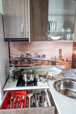 — Кухонная техника (плита и духовка, вытяжка, холодильник, микроволновка, чайник);
