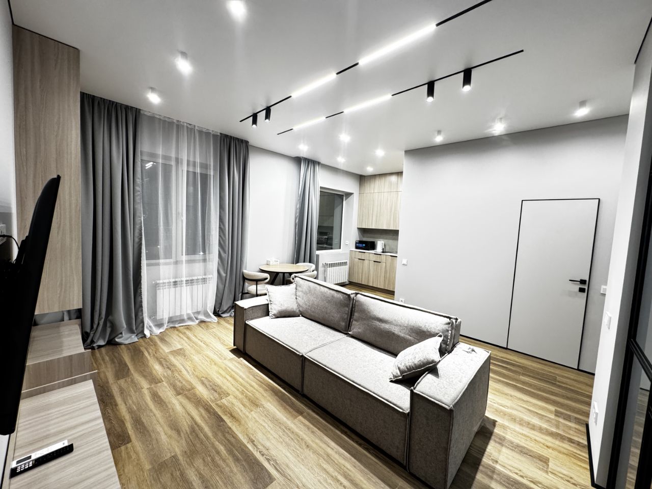 Балкон, Входная дверь , Паркет, Межкомнатные стеклянные двери, Натяжной потолок, Пластиковые окна, Софиты.