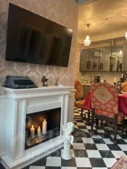 Гостиная , объединённая с кухонной зоной (диван раскладной 180*200) , биокамин с настоящим огнём , старинный обеденный стол, 4 стула и полностью укомплектованная кухня: чайник, капельная кофе машина, духовой шкаф, свч печь, встроенный холодильник и морозильная камера, стиральная машинка, утюг), красивая винтажные посуда ( сервизы времён СССР, мельхиоровые столовые приборы)