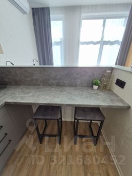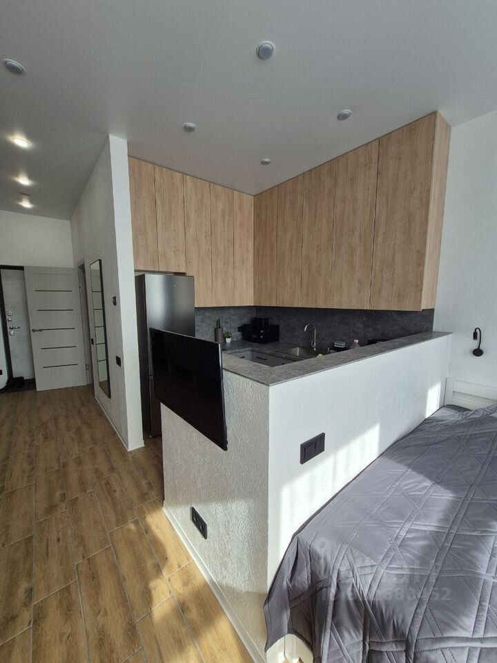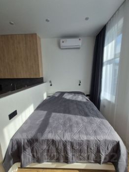 В квартире сделан дизайнерский ремонт. Пространство оптимально организовано, что делает студию комфортной для проживания. В комнате и на кухне есть вся необходимая мебель, техника