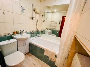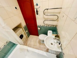 Ванная комната с унитазом, раковиной, ванной, проточным водонагревателем, стиральной машиной с порошком, феном;